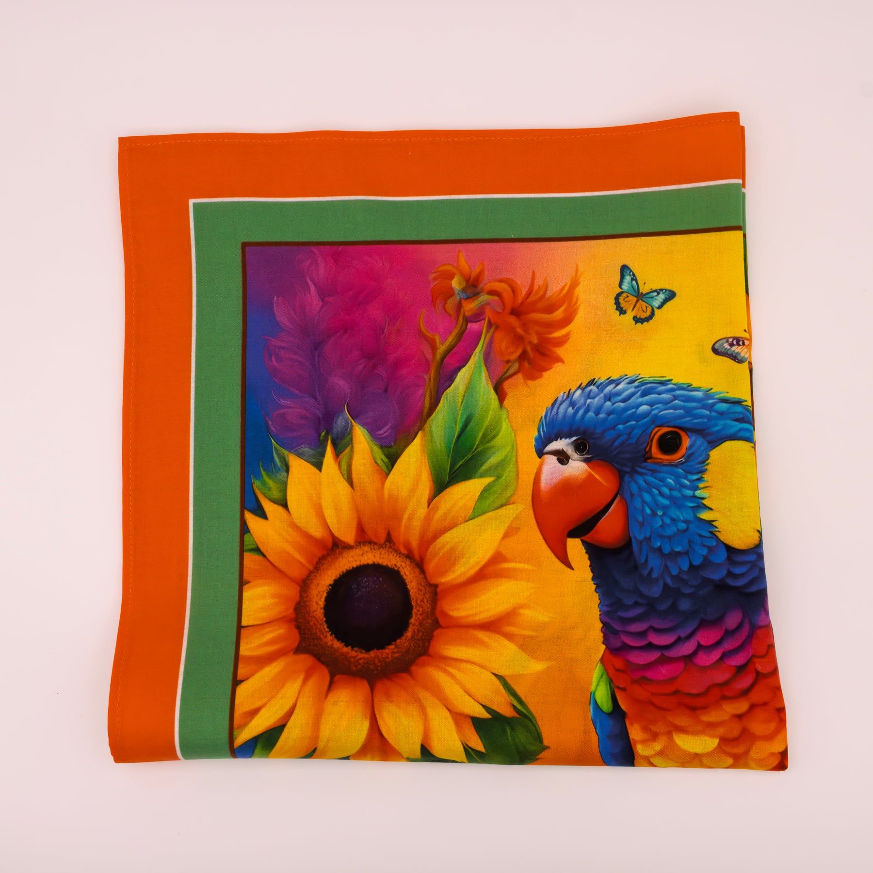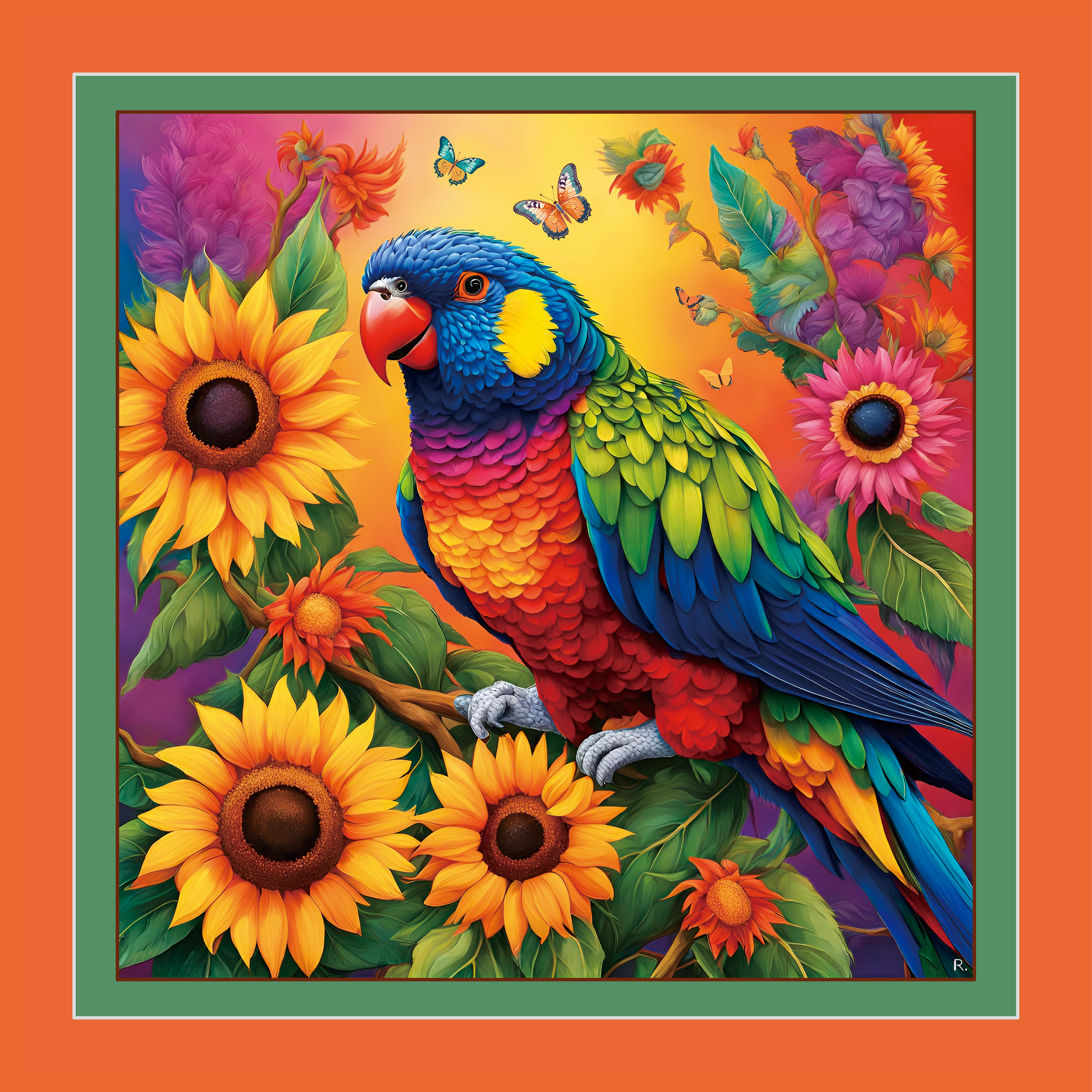 オーストラリアに生息する虹色の鳥、レインボーロリキートのように、明るく活発に、そして人との触れ合いを大切にして生きていきたいという思いで、この作品を創り上げました。